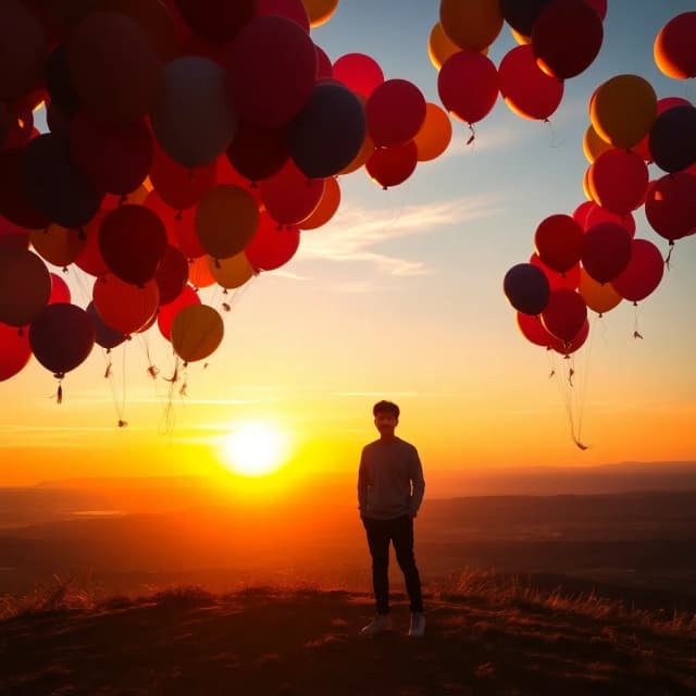 Balloons float by, colors fade in the air,