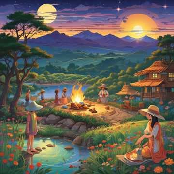 Bamboo shoot girls, under the pale moon's light,