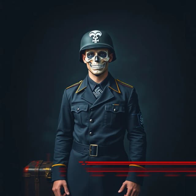 Dann seh' ich auf der Mutze den Totenschadel blitzen