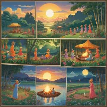 Bamboo shoot girls, under the pale moon's light,