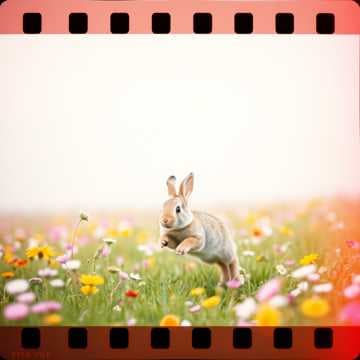 꽃밭 사이로 귀여운 토끼 새로이 손잡고
