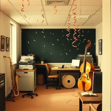 In a jazzy office where smiles abound,