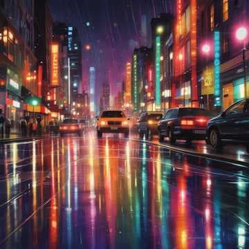 Raindrops falling, painting the streets,