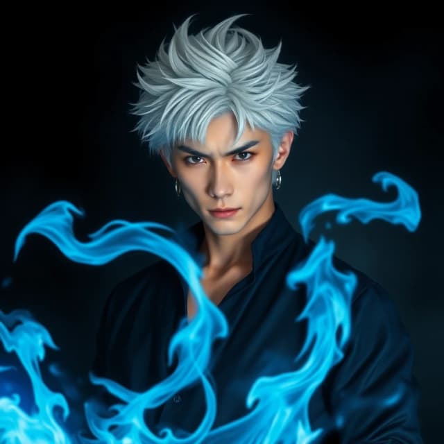 青い炎で燃え上がる
