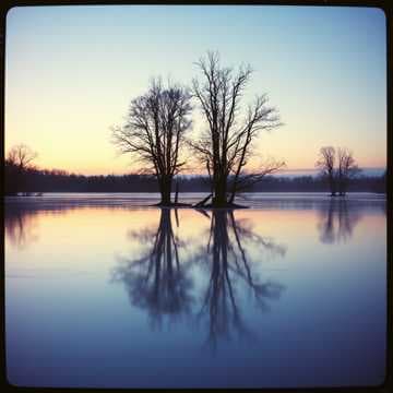 The chill of twilight, the lake lies deep,