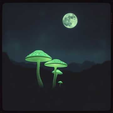 Pretty mushrooms light the sky,