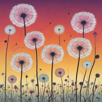 Field of dandelions is an orange flannel