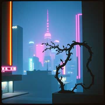 They ran laughing under neon lights,
