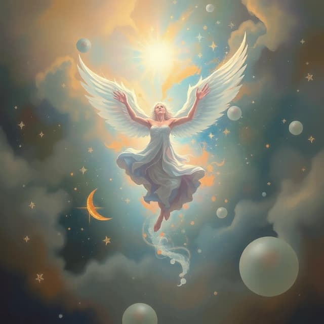 Weightless and free, bathed in silver light.