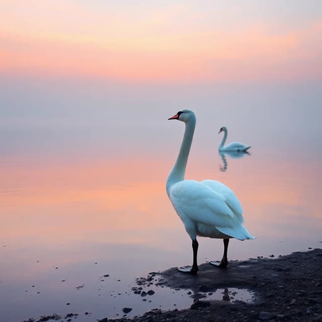 Two swans, entwined, yet so far apart, hand in hand