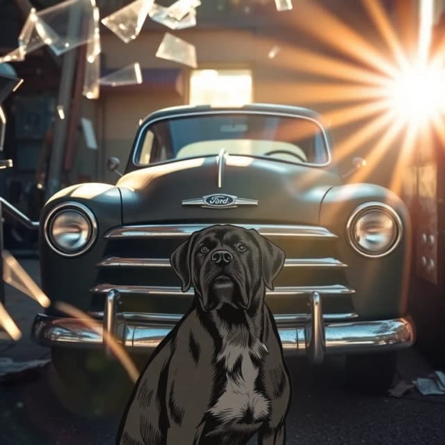 Paws on the fender, tail-tappin’ heat.