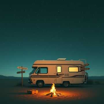 In my RV, chasing horizons, reaching high.