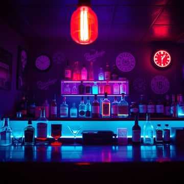 In the neon haze of a midnight dive,