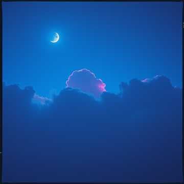 Neon signs and a silver moon
