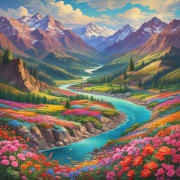 Fields of flowers, colors bright and bold,