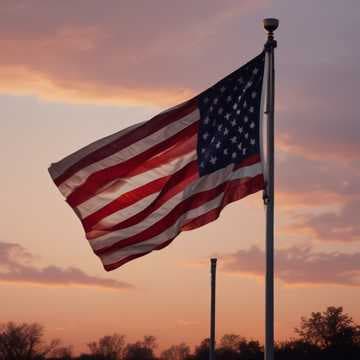 Flags wave in the wind, but their colors are faded,
