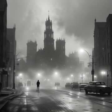 A névoa densa cobre a cidade, um véu cinzento,