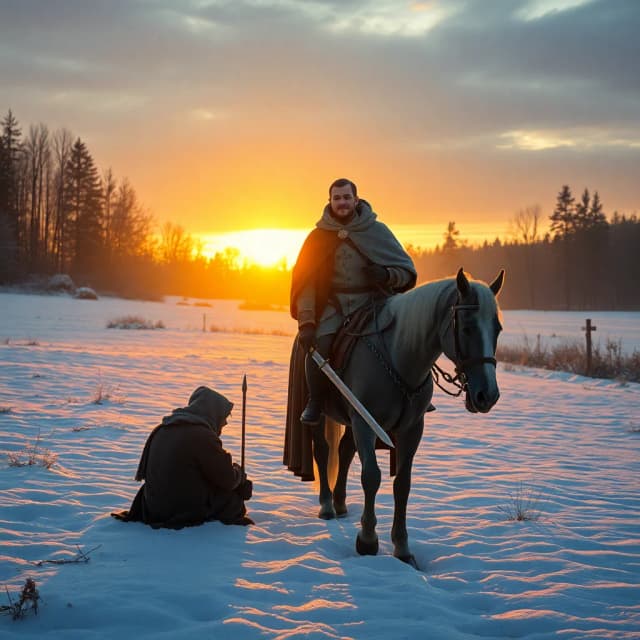 Sankt Martin, Sankt Martin Sankt Martin ritt durch Schnee und Wind Sein Ross, das trug ihn fort geschwind Sankt Martin ritt mit leichtem Mut Sein Mantel deckt ihn warm und gut Im Schnee saß, im Schnee saß Im Schnee da saß ein armer Mann Hat Kleider nicht, hat Lumpen an Oh helft mir doch in meiner Not Sonst ist der bitt're Frost mein Tod Sankt Martin, Sankt Martin Sankt Martin zieht die Zügel an Sein Ross steht still beim armen Mann Sankt Martin mit dem Schwerte teilt Den warmen Mantel unverweilt Sankt Martin, Sankt Martin Sankt Martin gibt den halben Still Der Bettler rasch ihm danken will Sankt Martin aber ritt in Eil Hinweg mit seinem Mantelteil