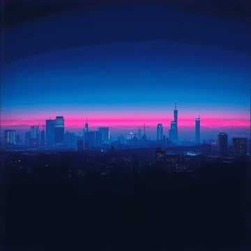 Lights flicker in a neon haze