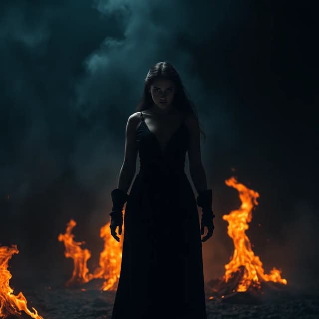 Fire glowing bright, claiming her throne.