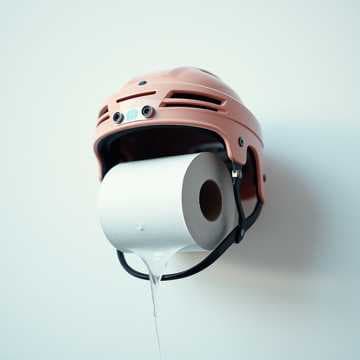 Helmet’s tilted tears on his cheek