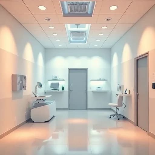Soft ambient soundscape for medical space: slowly evolving pads tuned to 432 Hz with subtly layered overtone bands at 528 / 639 / 741 / 852 Hz. Gentle, regular pulse suggested by warm synth swells and soft plucked tones instead of percussion. Long, airy reverbs and filtered noise beds create a clinical yet comforting halo, with seamless loop points and minimal dynamic shifts for extended playback., ambient