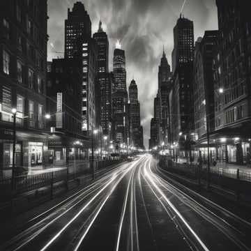 Light streaks, city leaks, murky glow,