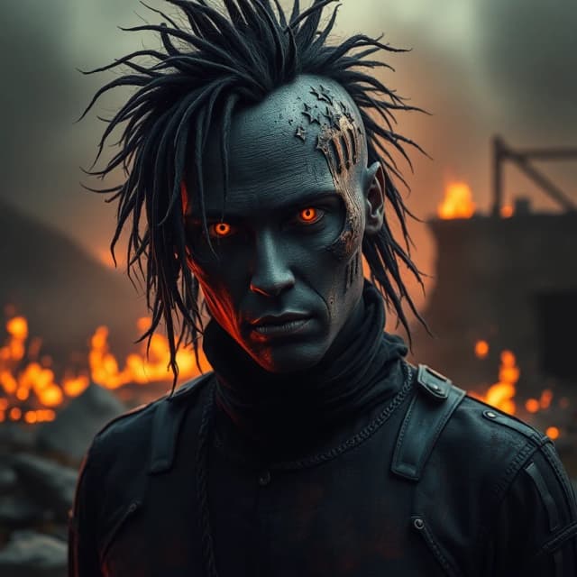 Eyes wild with fury, a heart painted black.